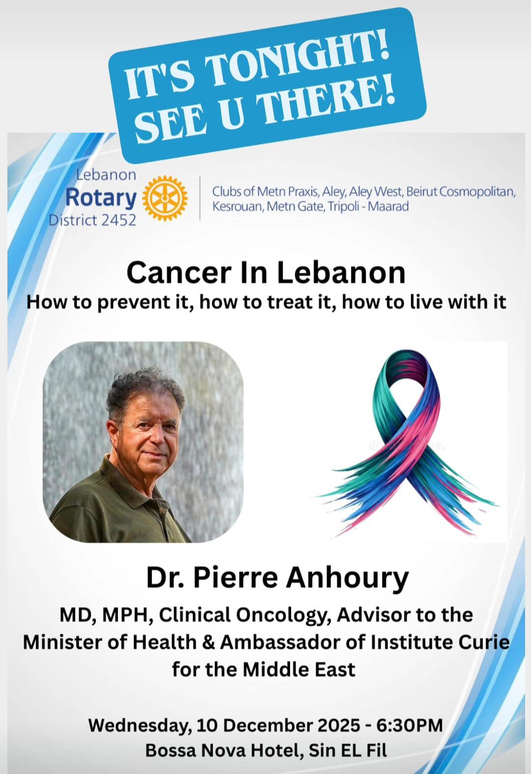 ROTARY CLUB BEIRUT CADMOS in collaboration with Rotary clubs of BEIRUT CENTER, BEIRUT COSMOPOLITAN, & CHOUF | Olga Feghali | 2025-12-10 22:00:00Z | 0 | ||