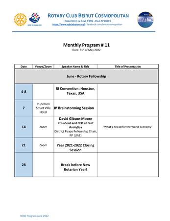 Agenda for the Month of June 2022